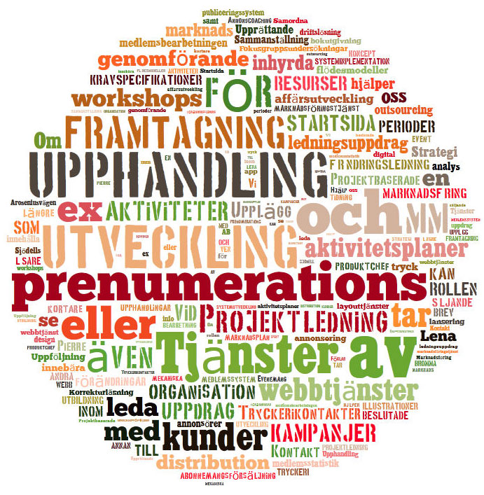 Vi har upparbetade samarbetspartners inom flera områden och kan därför ta övergripande ansvar för en del projekt om så önskas.